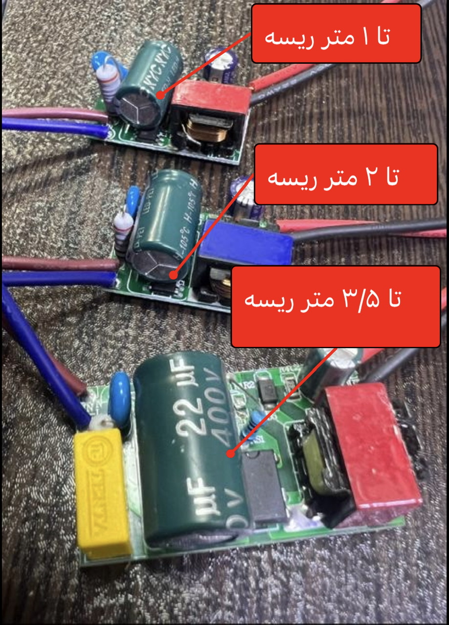 اگر قصد دارید در یه مسیر طولی بیشتر از ۵ متر ریسه ۱۲ ولتی را روشن کنید حتما باید به ۵ متر دوم توسط سیم از ترانس ولتاژبرسانید تا دچار افت نور در متر ۶ به بالا نشوید .