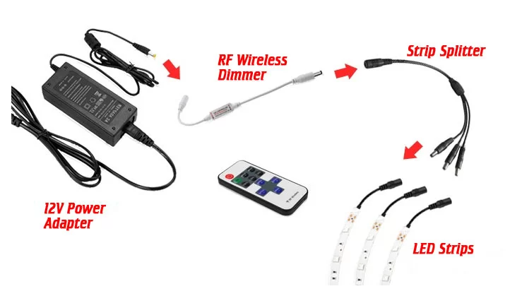 کنترلکنندههای RGB (وای فای/ ریموت/ بلوتوث): اگر از ریسه ال ای دیRGB با قابلیت تغییر رنگ استفاده میکنید، باید از یک کنترلکننده RGBنوع 3 کاناله نیز استفاده کنید. این کنترلکنندهها کانال رنگهای قرمز، سبز و آبی را به منظور ترکیب این رنگها و ایجاد جلوههای تغییر رنگ ریسه ال ای دی کنترل میکنند. اگر از این کنترلکنندهها استفاده نشود ریسه ال ای دیRGBبه درستی کار نخواهد کرد. بنابراین همیشه باید یادتان باشد که اگر از ریسههای ال ای دی چند رنگه استفاده میکنید حتما کنترلکننده آن را نیز خریداری کنید.