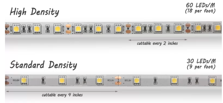 | High (HD) | 60/Meter | 1080/M | 40 Watts | Every 2″ | 16.4 Ft. |