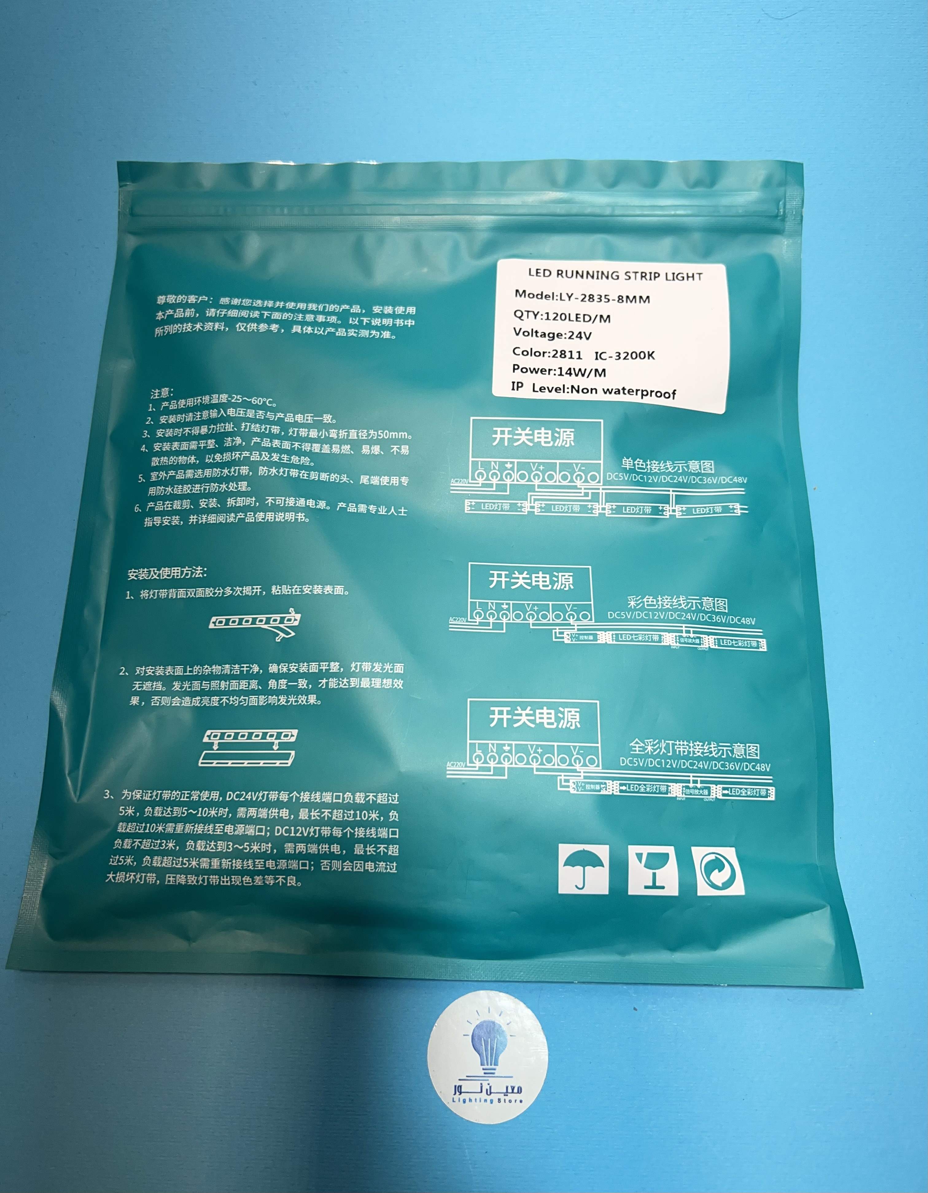 ریسه نواری آیسی دار حرکتی پشت مس ۲۴ ولت مناسب لاین نوری یکی از به روز ترین مدل های ریسه نواری که توسط کنترلر های مخصوص فرمان حرکت نور به حالت های مختلفی می گیرد . به طور مثال با زدن کلید نور از ابتدای ریسه حرکت کرده و به صورت حرکتی به سمت انتها می رود ، این مدل از ریسه نواری امروزه در لاین های نوری ، قرنیز های نوری و ... مورد استفاده قرار میگیرد . این محصول با ولتاژ ۲۴ ولت تغذیه میشود و در هر متر ۱۴ وات توان دارد شما در ابتدای ریسه ۵ رشته سیم در اختیار دارید که ۳ عدد از آنها به سوکت متصل شده که مربوط به ریموت کنترل ریسه می باشد و ۲ عدد سیم که وظیفه رساندن ولتاژ از ترانس به ریسه نواری آیسی دار را بر عهده دارد . این محصول دارای ۱۸ ماه کارانتی می باشد ریسه نواری حرکتی در حلقه های ۱۰ متری عرضه میشود لطفا در هنگام خرید مقدار را روی ضریبی از ۱۰ قرار دهید که محصول به صورت پک کامل ارسال گردد .لازم به ذکر است که این ریسه در هر ۲۰ سانتی متر امکان برش دارد . قیمت درج شده بر حسب یک متر بوده و در حلقه های ۱۰ متری عرضه می گردد.