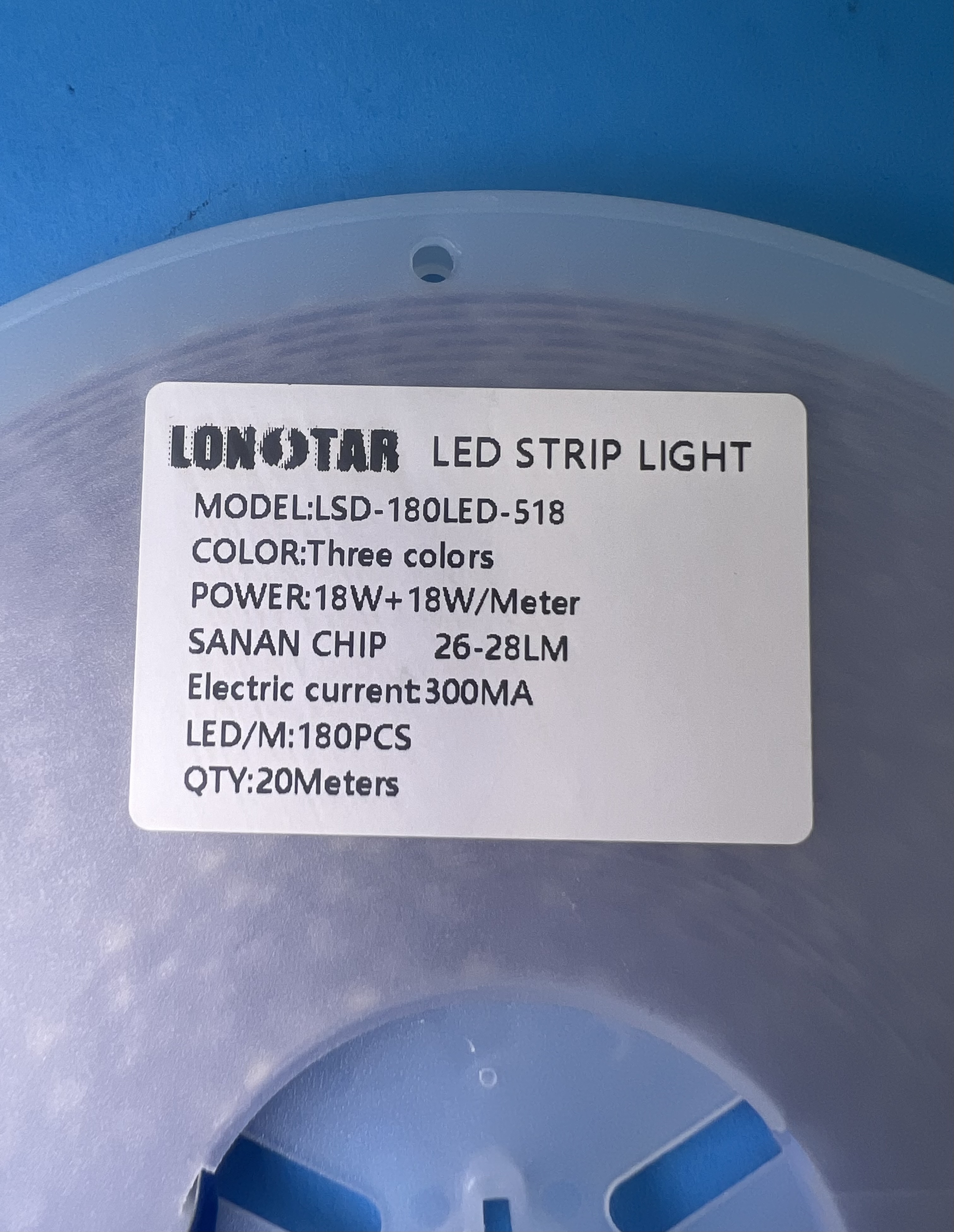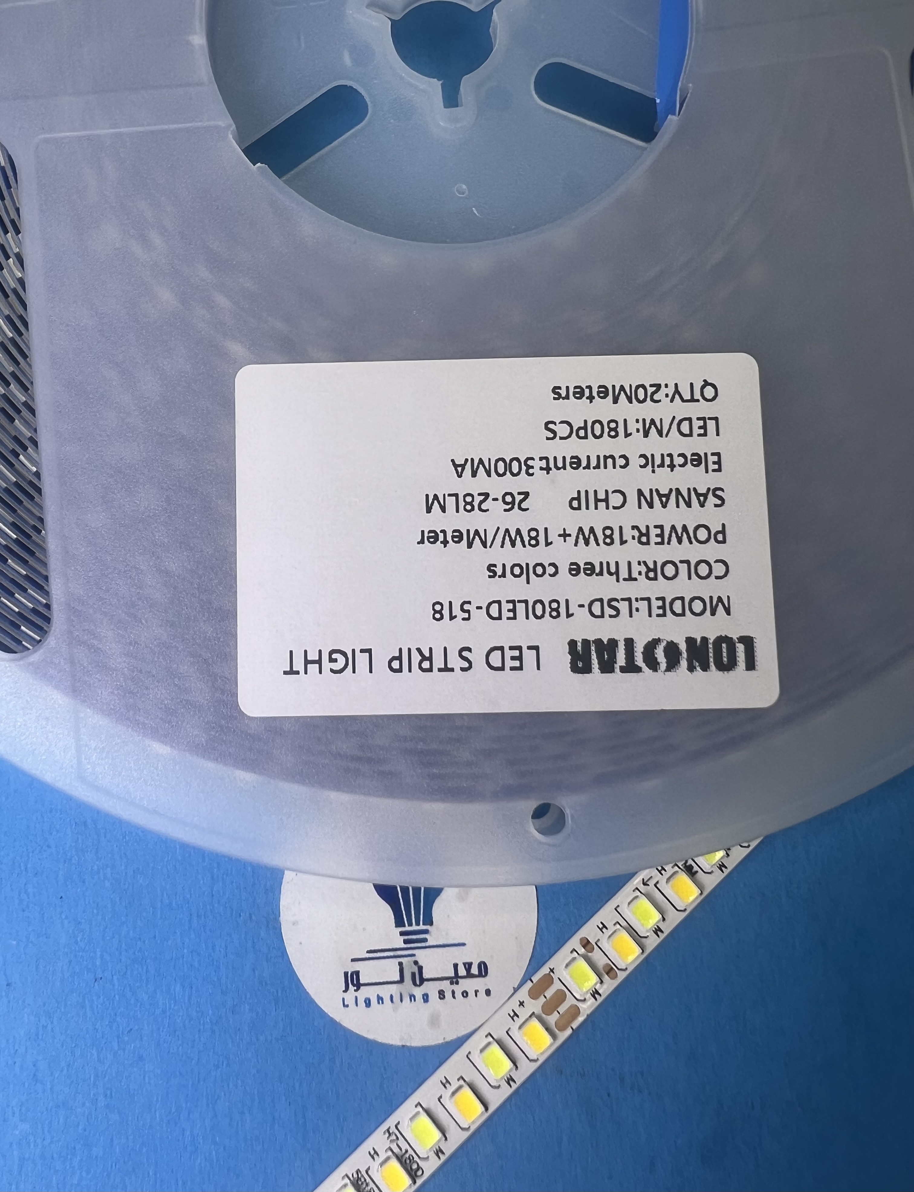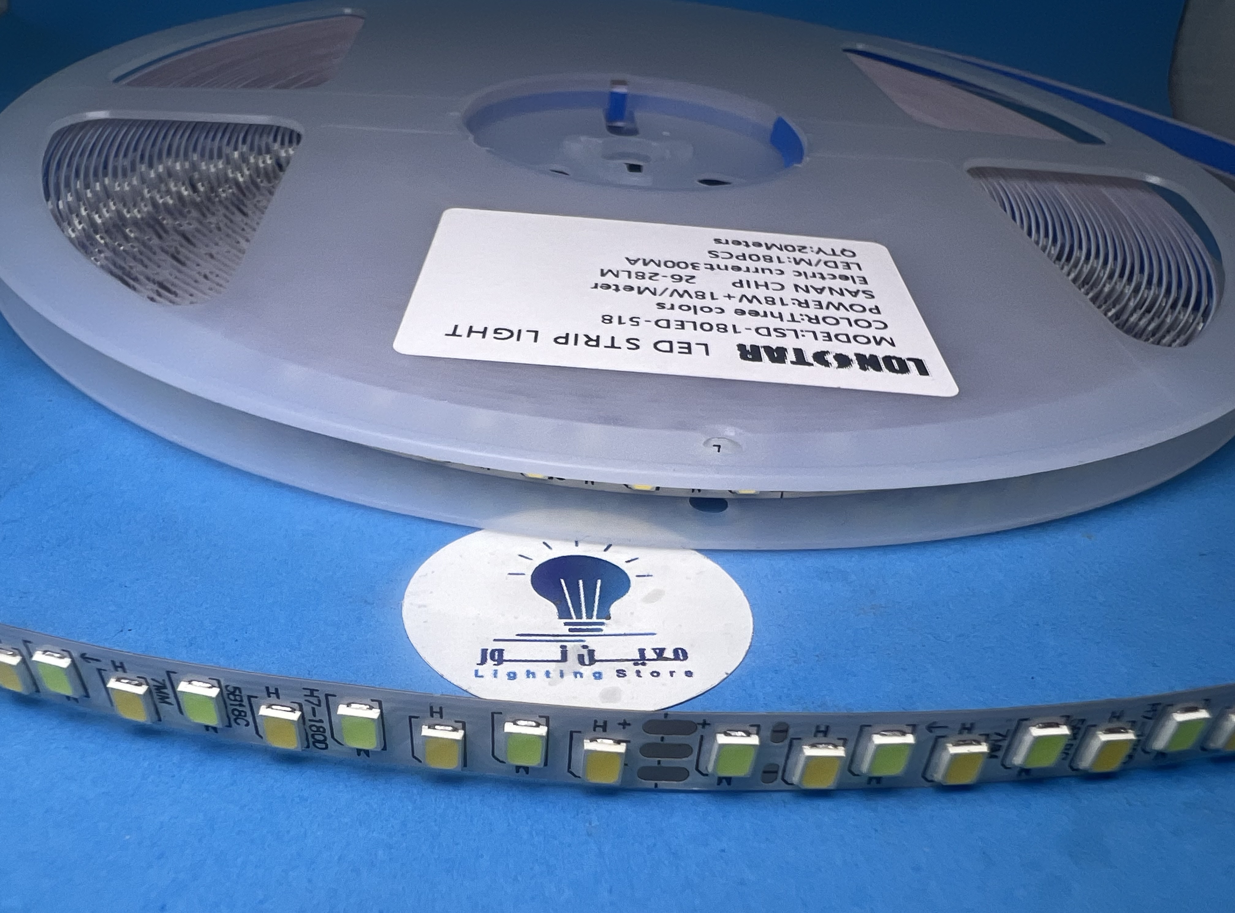 ریسه نواری تراکم ۱۸۰ سه حالته با قابلیت تغییر رنگ در حلقه های ۲۰ متری عرضه می شود که امروزه در چراغ های لاینی و لوستر های ال ای دی مصرف بسیاری پیدا کرده و به علت سهولت استفاده این محصول وپشت چسب دار بودن آن توجه طراحان و تولید کنندگان را به خود جلب کرده. دارای امکان برش در هر ۵ سانتی متر میباشد و هر متر این ریسه ۳۶ وات توان و در هر وات ۱۲۵ لومن بهره وری نوری دارد. این ریسه توسط درایور های جریان ثابت ال ای دی روشن میشود و برای تغییر رنگ نیاز به استفاده از ترانس های سه حالته دارند به علاوه اینکه در لوستر های اس ام دی نیز این محصول مصرف دارد .