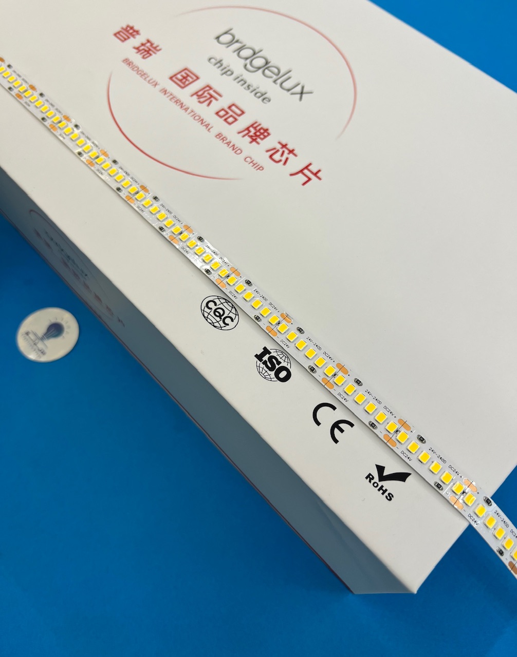 ریسه نواری تراکم ۲۴۰ ۲۴ ولت ساخته شده از چیپ بریجلوکس ، اگر به دنبال یک ریسه نواری ۲۴ ولت با تراکم ۲۴۰ هستید که آن را بتوان یک محصول اروپایی نامید و دارای طول عمر بالا ، کیفیتی بی رغیب نه تنها در میان محصولاتی که در کشور موجود است بلکه کیفیتی در سطح جهانی این محصول همان است .ریسه نواری وارد شده توسط مجموعه معین نور از برند بریجیلوکس تمامی استاندارد های اروپایی از جمله (CE) (ROHS) (ISO) را دارا میباشد و در حال حاضر با کیفیت ترین ریسه موجود در ایران میباشد . اگر بخواهیم از چند ویژگی این ریسه نام ببریم شاخص نمود رنگ بالا که باعث میشود هر چیزی که زیر این نور قرار بگیرد نمایی واقعی از رنگی که دارد به نمایش بگذارد ، استفاده شده از مدار Electroplate که در در ریسه های دیگری در بازار وجود دارد تقریبا این ویژگی دست نیافتنی میباشد.و توان واقعی ۱۸ وات بر متر و عدم افت نور در انتهای ۱۰ متر این ریسه را یکی از بهترین های کشور نام گذاری میکند . این ریسه در حلقه های ۱۰ متری عرضه میشود .