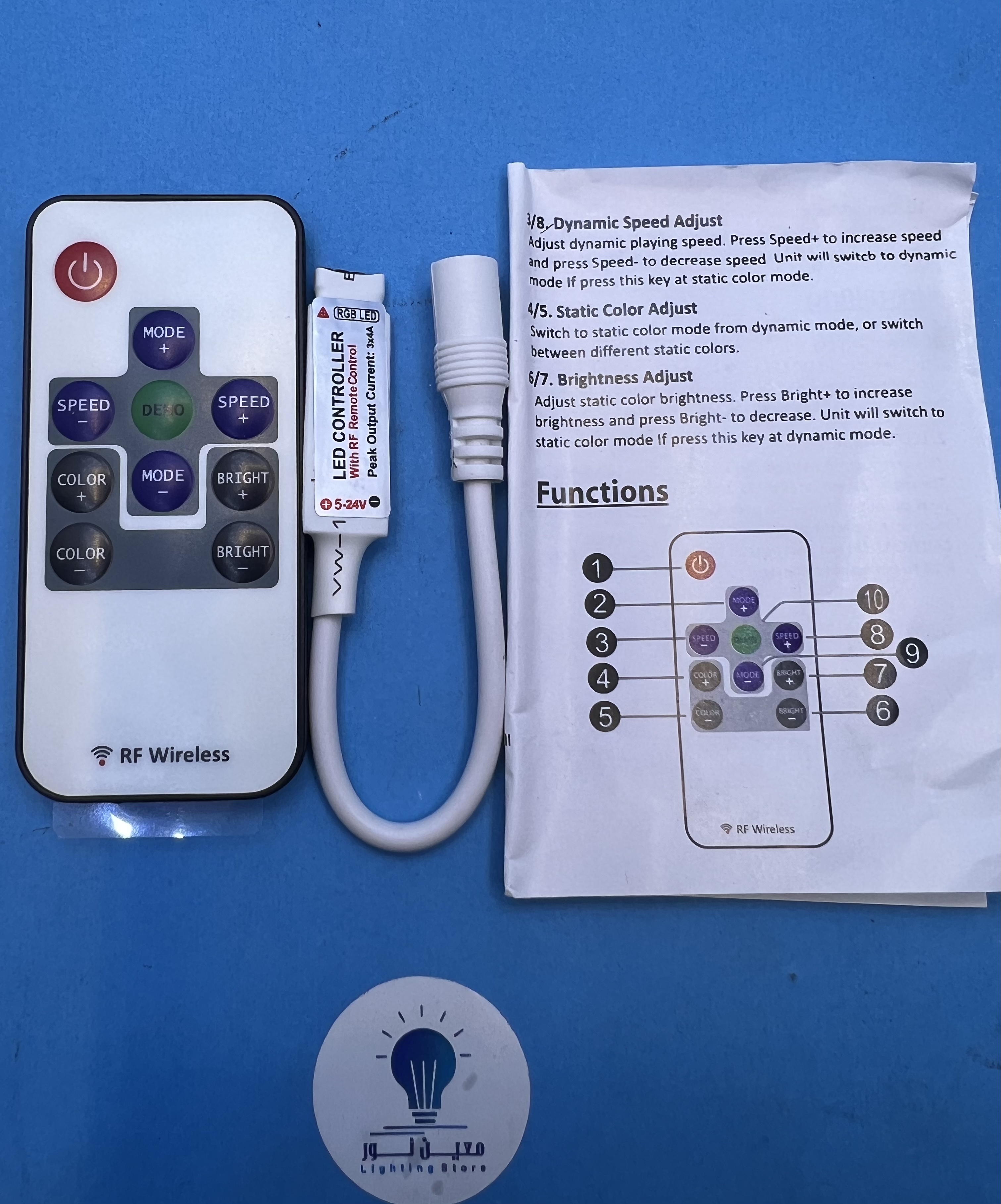 ریموت کنترل ال ای دی ۶ آمپر RGB جهت فرمان کلیه ال ای دی ها با ولتاژ کاری ۵ الی ۲۴ ولت مورد استفاده قرار میگیرد ، این ریموت قابلیت تنظیم شدت نور چراغ و افکت ها و بازی های مختلفی را برای چراغ های ال ای دی ایجاد می کند .