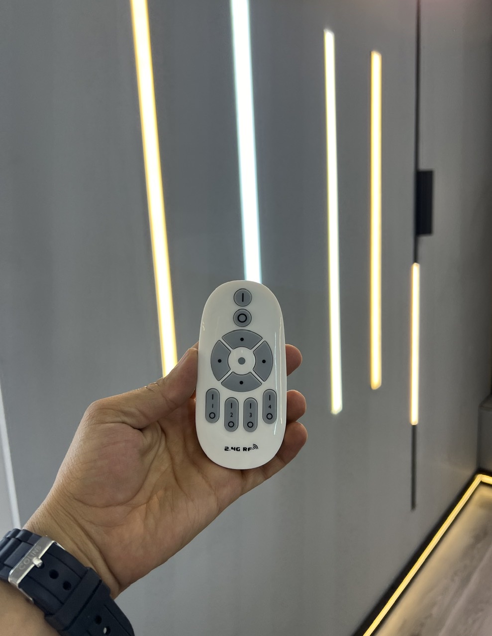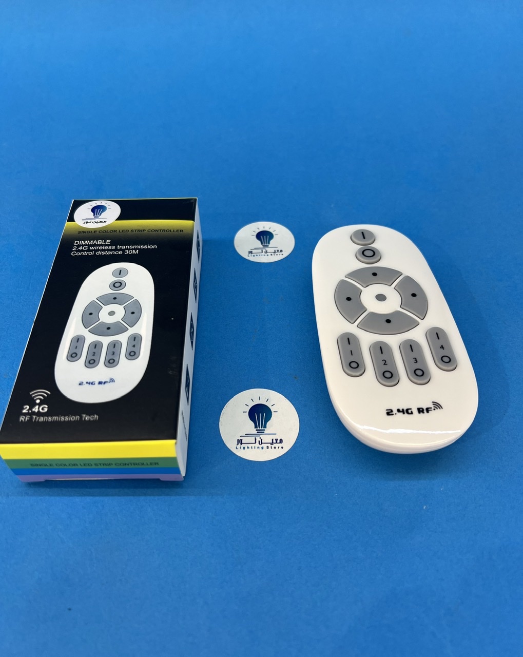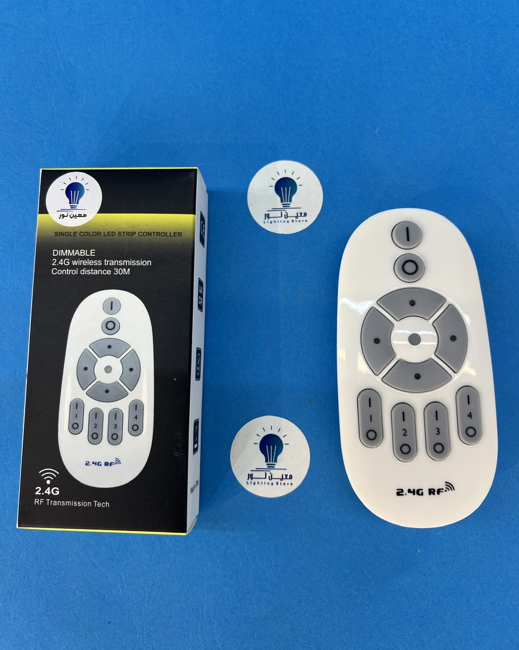 ریموت کنترل دیمر با قابلیت کنترل ۴ نقطه مجزا این محصول بسیار کاربردی می باشد به صورتی که این کنترل دارای این امکان می باشد که ۴ نقطه مجزا از هم را با یک کنترل خاموش ، روشن ، کم نور و پر نور کنید .این کنترل قابلیت اتصال به دیمر های ۱۲ ولتی که از قسمت دیمر ها می توانید آن را خریداری کنید را دارد .روی این کنترلر اعدادی از ۱ تا ۴ میباشد که زمانی که می خواهیم به دیمر های مختلف فرمان بدهیم از این اعداد استفاده می کنیم .دقت داشته باشید در پایین صفحه دیمر مربوط به این کنترل قرار داده شده که حد اقل به یک عدد از آن نیاز دارید .