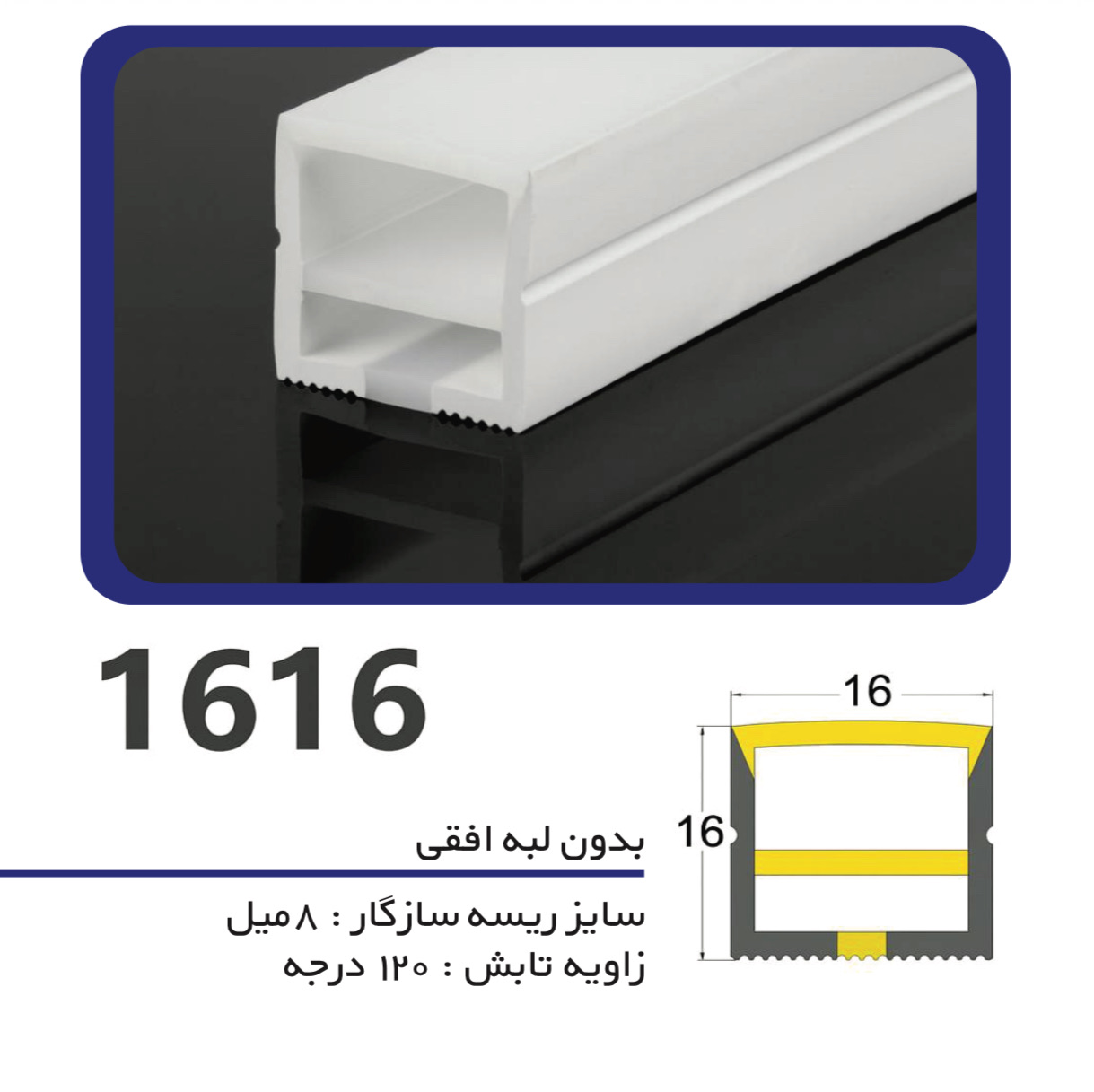 سیلیکون لاین نوری بدون لبه سایز ۱۶ در ۱۶ افقی ، لاین نوری سیلیکونی یکی از جدید ترین و به روز ترین مدل های لاین نوری میباشد که به علت سهولت در نصب پر طرفدار میباشد ، شما نسبت به عرض پروفیل سیلیکونی که انتخاب میکنید میتوانید ریسه مناسب آن را داخل آن قرار دهید ،توصیه میشود در پروفیل های سیلیکونی از ریسه های ۱۲ ولت یا ۲۴ ولت استفاده کنید .این محصول را میتوانید ضریبی از ۱۰ خریداری کنید . قیمت درج شده قیمت یک متر محصول میباشد .