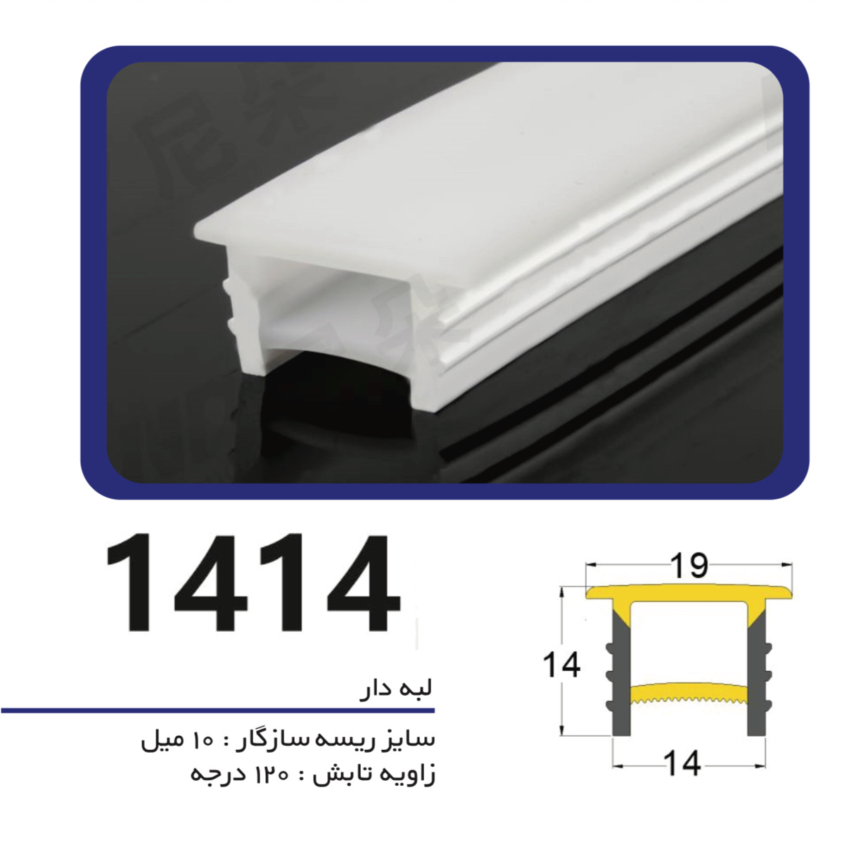 سیلیکون لاین نوری لبه دار سایز ۱۴ میل در ۱۴ میل ، لاین نوری سیلیکونی یکی از جدید ترین و به روز ترین مدل های لاین نوری میباشد که به علت سهولت در نصب پر طرفدار میباشد ، شما نسبت به عرض پروفیل سیلیکونی که انتخاب میکنید میتوانید ریسه مناسب آن را داخل آن قرار دهید ،توصیه میشود در پروفیل های سیلیکونی از ریسه های ۱۲ ولت یا ۲۴ ولت استفاده کنید .این محصول را میتوانید ضریبی از ۱۰ خریداری کنید . قیمت درج شده قیمت یک متر محصول میباشد .