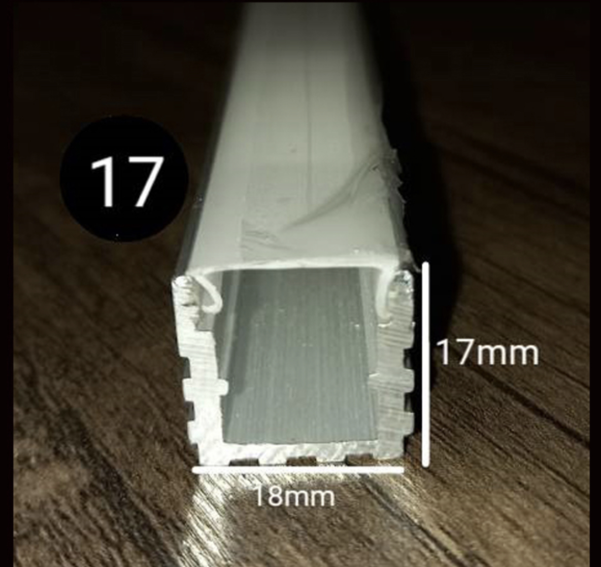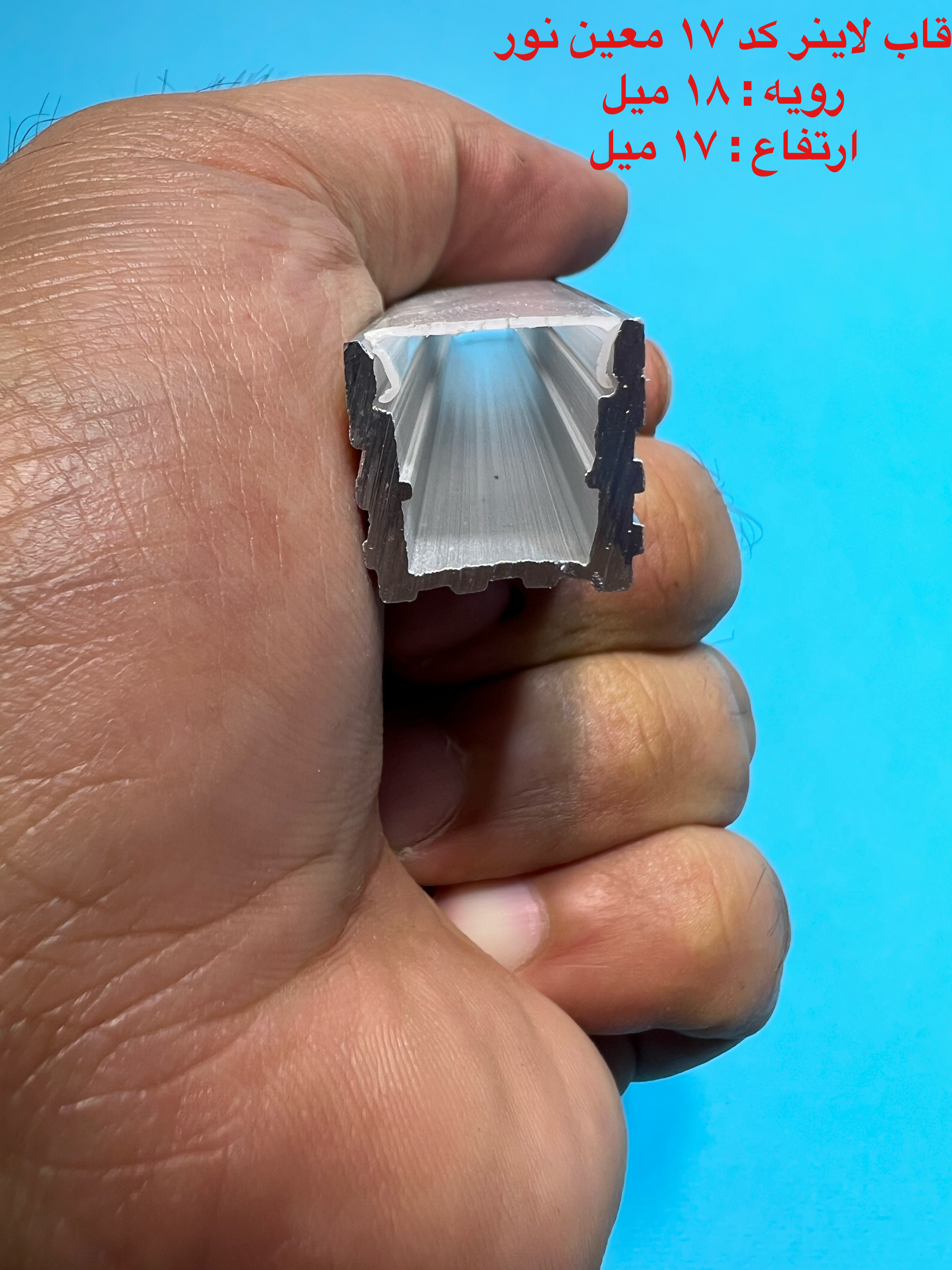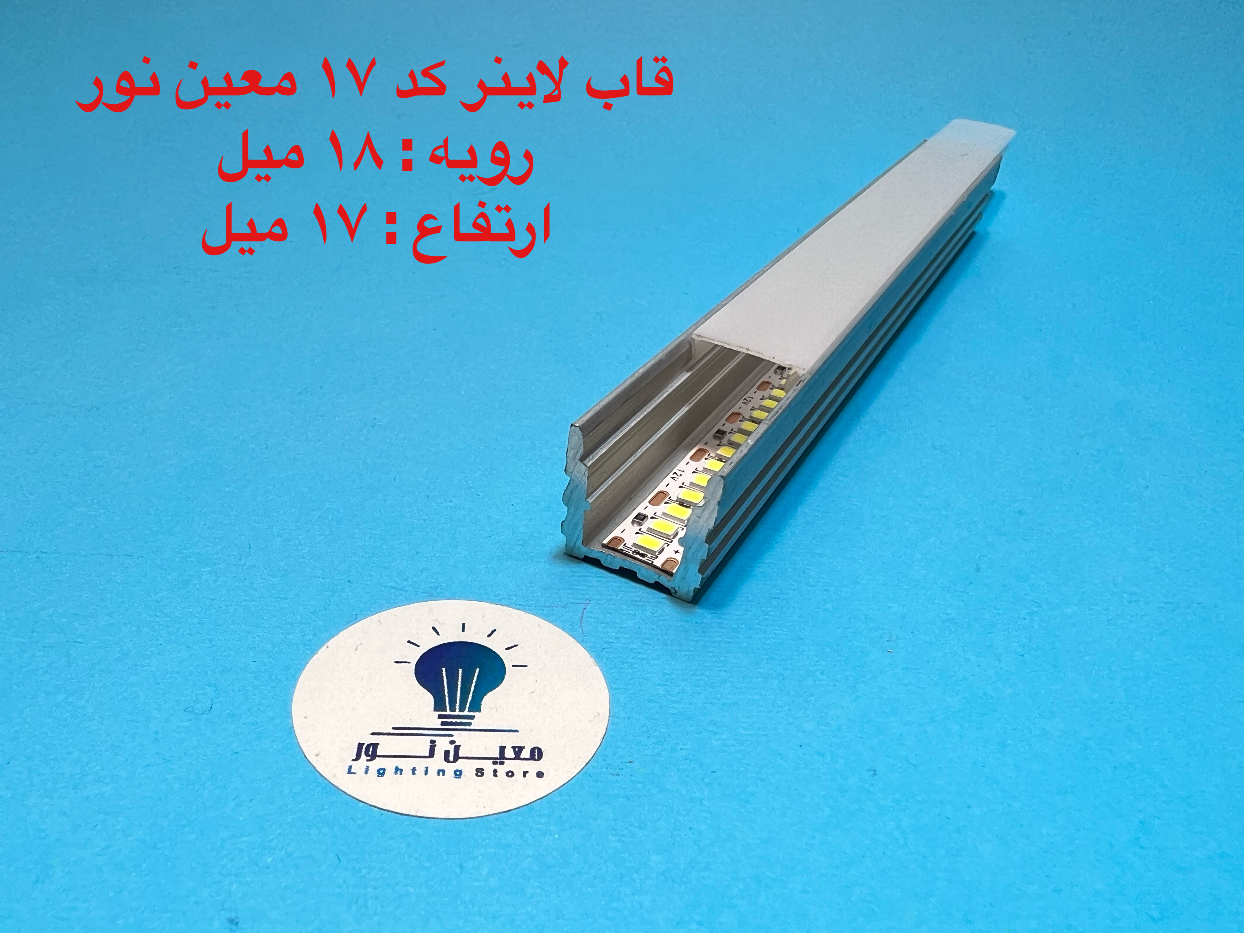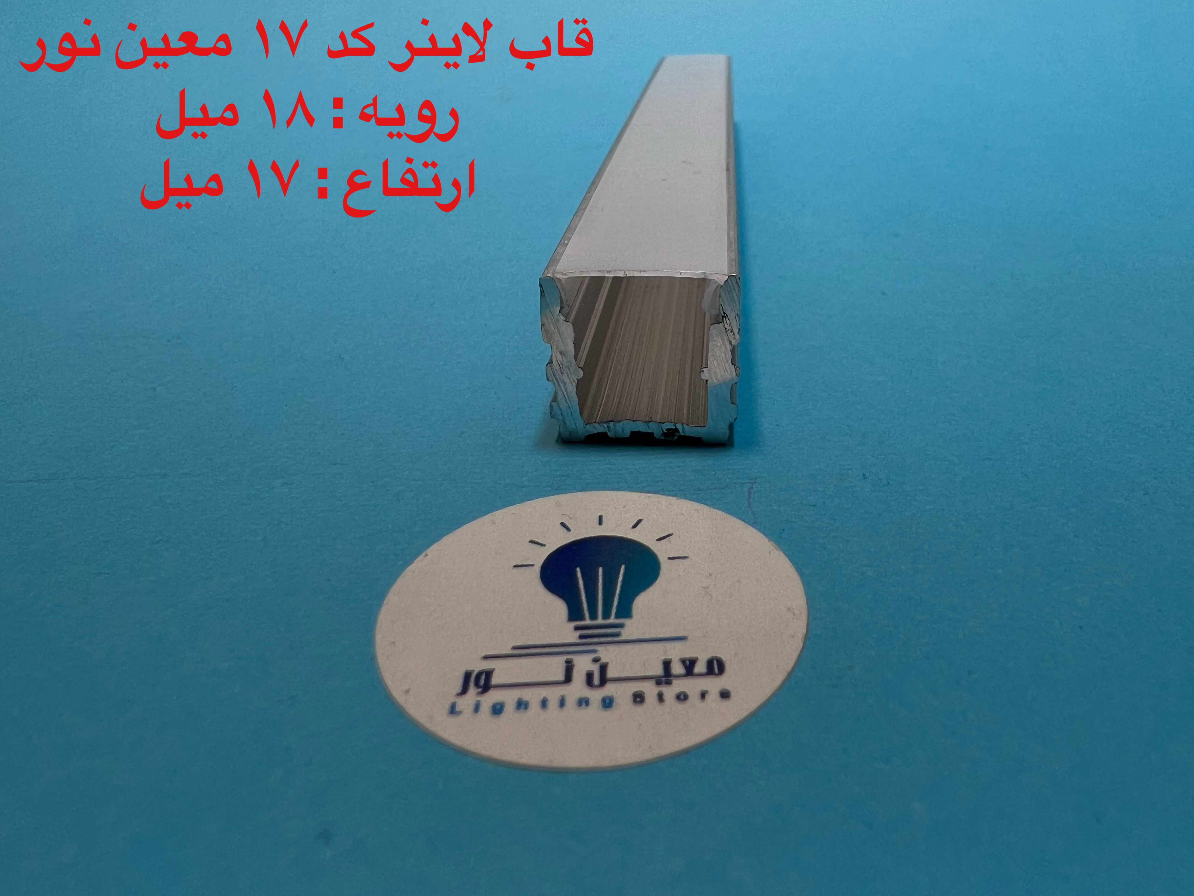 قاب لاینر نوری کد ۱۷ رویه ۱۸ میل ارتفاع ۱۷ میل تا شاخه 6 متری و در سه رنگ ، سفید ، مشکی و نقره ای قابل عرضه می باشد ، طلق رویه امکان ارائه تا رول ۵۰ متری جهت مکان هایی که نیاز دارید طلق به صورت یک تکه روی کار قرار گیردموجود است . برای انتخاب ریسه مناسب جهت استفاده در این پروفیل لاین نوری و تخمین قیمت تمام شده لاین نوری در قسمت پایین همین صفحه راهنمای خرید لاین نوری را مشاهده کنید.ارسال به سراسر نقاط کشور .قیمت درج شده قیمت هریک متر از محصول به همراه طلق رویه می باشد . ابعاد داخل عکس کاملادقیق میباشد .این محصول در شاخه های 3 متری و 6 متری عرضه میگردد لطفا هنگام خرید مقدار را ضریبی از 3 یا 6 انخاب نمایید .