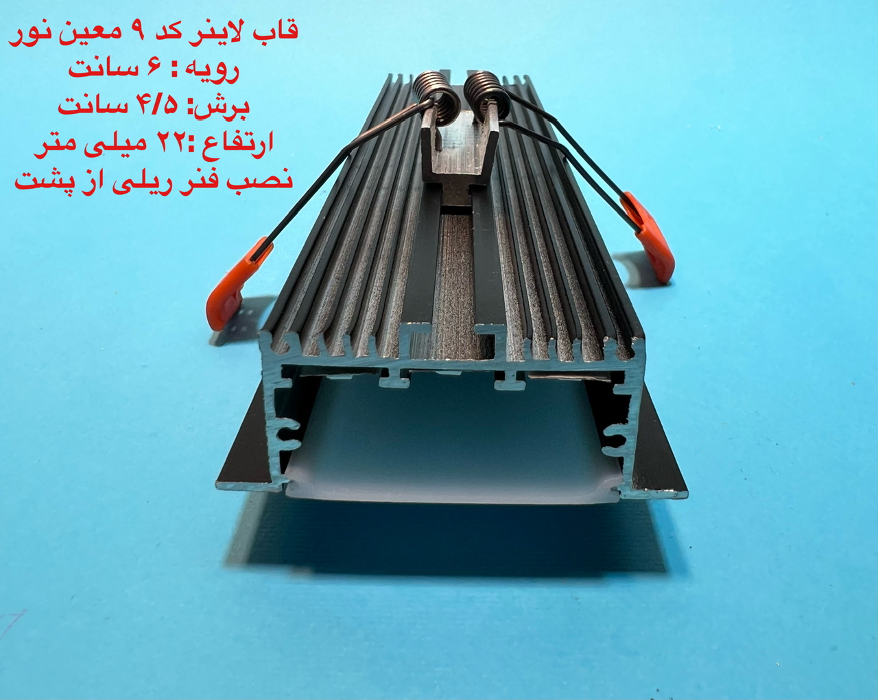 قاب چراغ لاینی کد ۹ توکار ۳ ردیفه رویه ۶ سانت برش ۴۵ میل تا شاخه 6 متری و در سه رنگ ، سفید ، مشکی و نقره ای قابل عرضه می باشد ، طلق رویه امکان ارائه تا رول ۵۰ متری جهت مکان هایی که نیاز دارید طلق به صورت یک تکه روی کار قرار گیردموجود است. این لاین نوری از خانواده لاینر های فنر خور می باشد .برای انتخاب ریسه مناسب جهت استفاده در این پروفیل لاین نوری و تخمین قیمت تمام شده لاین نوری در قسمت پایین همین صفحه راهنمای خرید لاین نوری را مشاهده کنید ارسال به کلیه نقاط کشور .قیمت درج شده قیمت هریک متر از محصول می باشد . ابعاد داخل عکس کاملادقیق میباشد .درصورتی که نیاز به خرید این محصول به صورت کامل به همراه ال ای دی ( مونتاژ شده کامل )را دارید با ما تماس بگیرید . این محصول در شاخه های 3 متری و 6 متری عرضه میگردد لطفا هنگام خرید مقدار را ضریبی از 3 یا 6 انخاب نمایید .قیمت درج شده بر حسب یک متر به همراه دفیوزر میباشد .