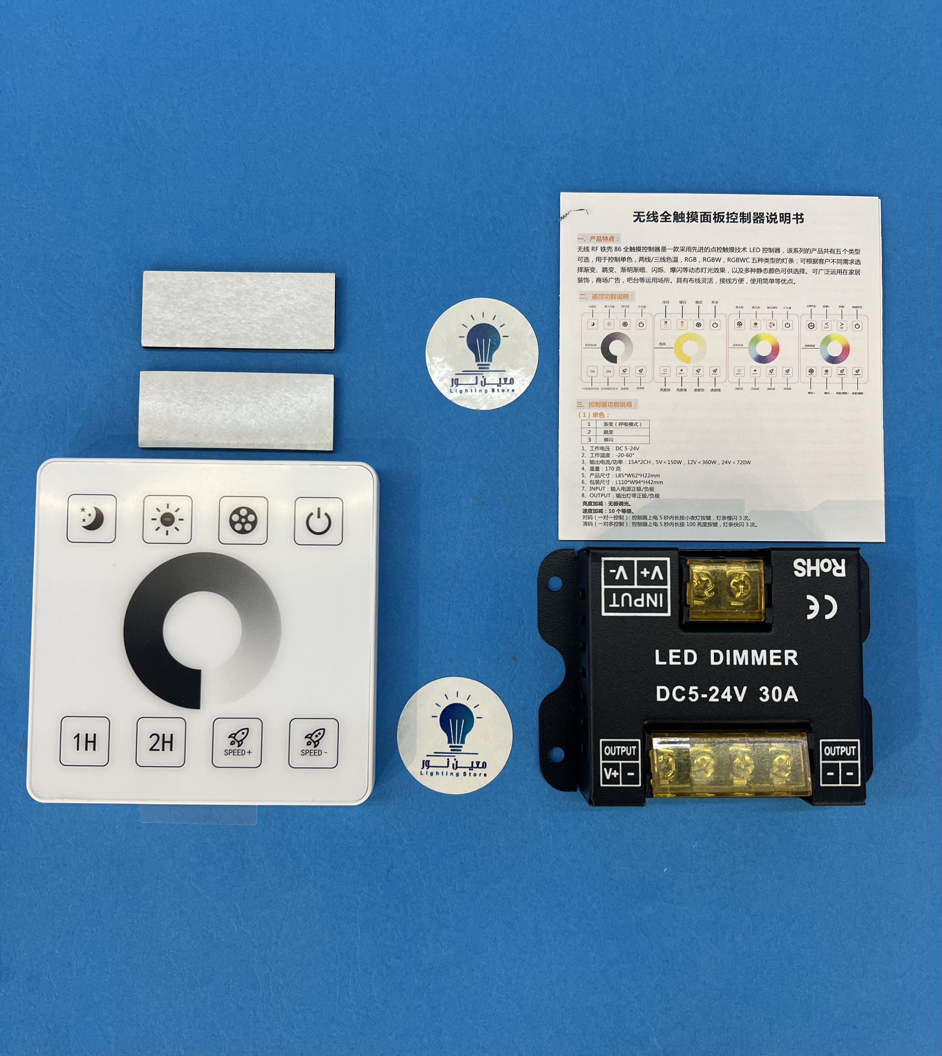 کنترل این دیمر نیز دارای یه صفحه تاچ میباشد و بسیار شکیل وزیبا میتواند نمایی زیبا به فضا بدهد .