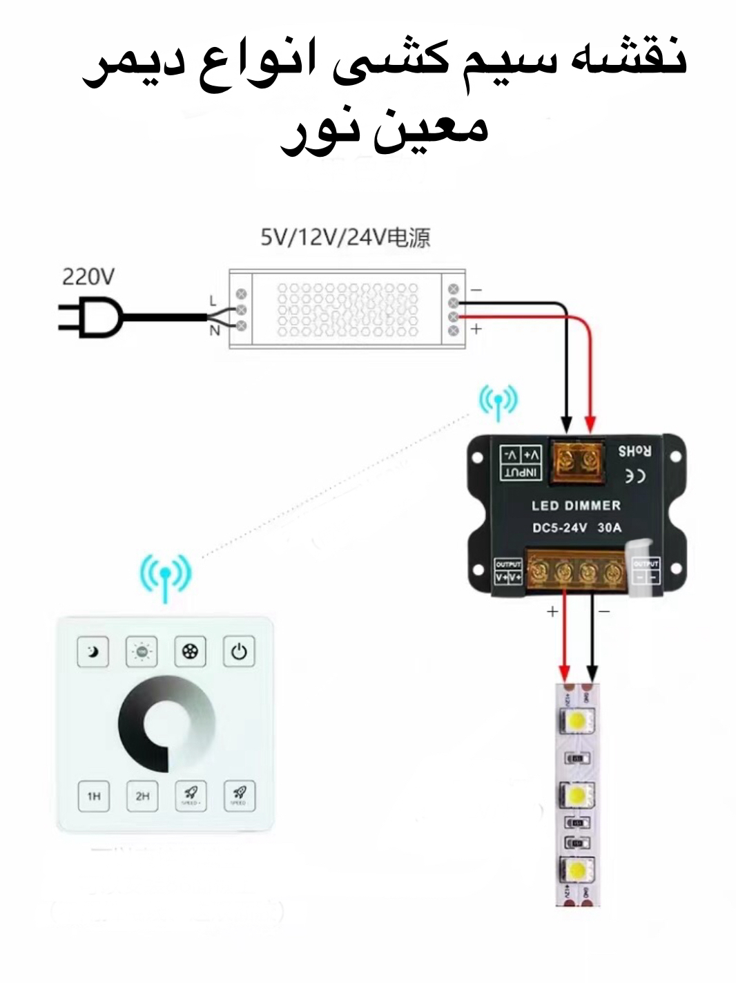 ارتباط کنترل با دیمر به صورت رادیویی بوده ونیازی نیست که که بیس دیمر وکنترل رو به روی هم قرار بگیرند .