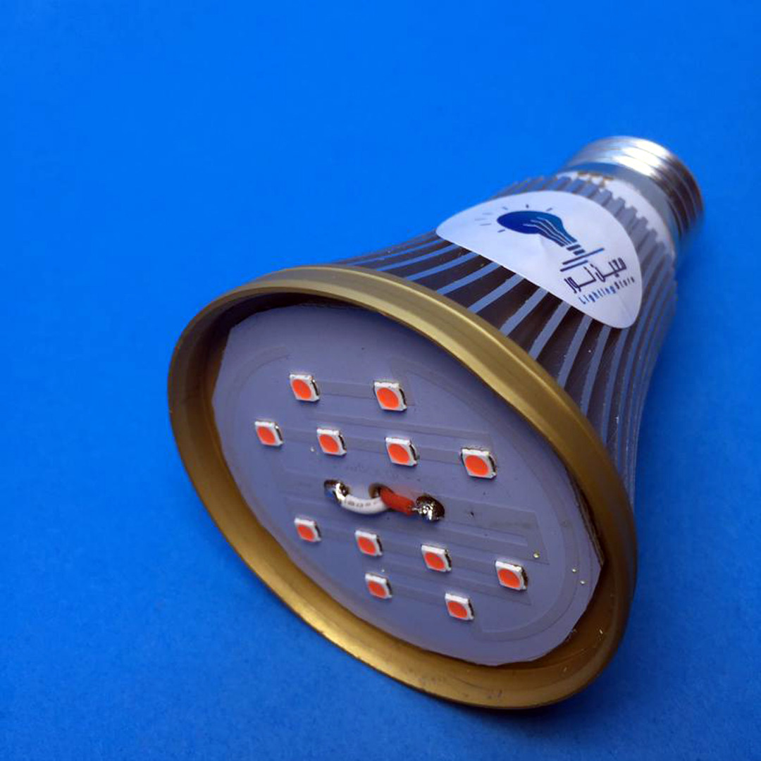 لامپ ال ای دی رشد گیاه12 وات دارای 12 عدد اس ام دی یک وات تولید کننده طول موج مورد نیاز گیاه شما جهت فتوسنتز میباشد و تمام نوری که یک گیاه نیاز دارد تامیین میکند وجه تمایز این محصول نسبت به لامپ های رشد گیاه استفاده از اس ام دی های 3030 برند بریجیلوکس میباشد که از بازدهی بسیار بالایی برخور دار می باشد طول موج تولیدی این چرا 380 نانو متر الی 850 نانو متر میباشد که جهت استفاده در تمامی فصول رشد از جمله رشد و گلدهی مناسب می باشد .جهت استفاده از این لامپ فقط و فقط نیاز به یک سر پیچ دارید و به سادگی می توانید آن را در بالای سر گیاه خود نصب کنید .توصیه ما برای بهره وری بهتر از لامپ فول اسپکتروم استفاده نکردن از حباب لامپ می باشد زیرا حباب لامپ باعث می شود مقداری از اشعه مورد نیاز گیاه از بین برود . فاصله ایده عال نصب تا تاج گیاه بهتر است از 30 سانتی متر کمتر و از 100 سانتی متر بیشتر نباشد