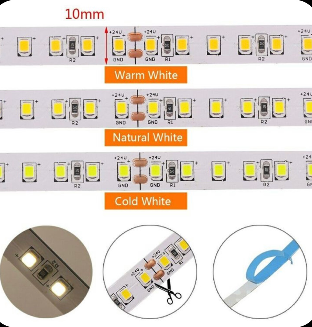 ریسه های ۲۴ ولتی دارای حلقه های ۵ متری می باشد که می توانید تا ۱۰ متر از این ریسه ها را میتوانید به اتصال سیم از یک طرف روشن کنید در صورتی طوی مسیر بیشتر از ۱۰ متر باشد به دلیل جلو گیری از افت نور در انتهای مسیر لازم است از ابتدا و انتهااتصال سیم بر قرار شود .